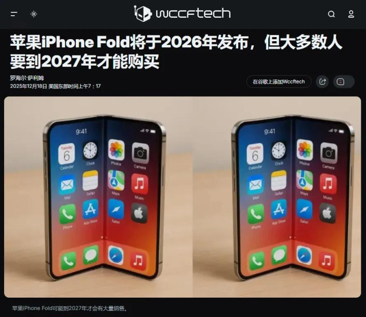 然而分析师郭明錤却表示,虽然折叠屏iPhone仍定于2026年发布,但由于开发进度相对落后,量产或跟不上,可能要到2027年才能顺利发货,预计到2026年底都会持续缺货状态。